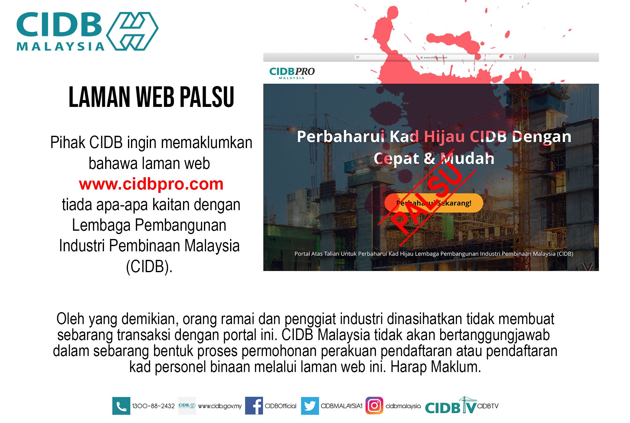 Cidb Malaysia On Twitter Laman Web Palsu Sekali Lagi Pihak Cidb Ingin Memaklumkan Bahawa Laman Web Https T Co Uloqbfxmis Tiada Apa Apa Kaitan Dengan Lembaga Pembangunan Industri Pembinaan Malaysia Cidb 1 2 Https T Co